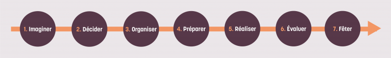 Un projet s’articule en sept étapes. Certaines prennent bien moins de temps que d’autres mais toutes sont importantes. Si votre projet inclut plusieurs sous-projets, chacun d’entre eux s’organisent selon la même structure. N’oublie pas que la route allie amusement et investissement.