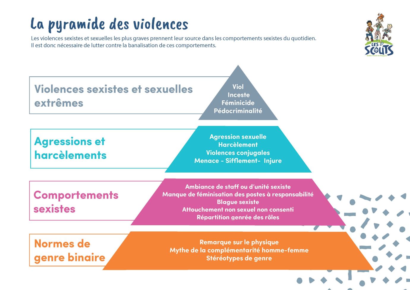 En tant qu’animateur ou animatrice scout·e, tu peux contribuer à donner un autre modèle : un cadre où l’égalité et le respect sont la norme.